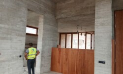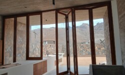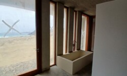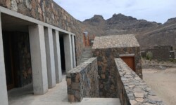 Použité materiály – kámen, pohledový beton, dřevo a sklo – vytvářejí čistý rámec pro život, kde se nic nepředstírá. Architektura je precizní, minimalistická a zároveň silně zakořeněná v místě.